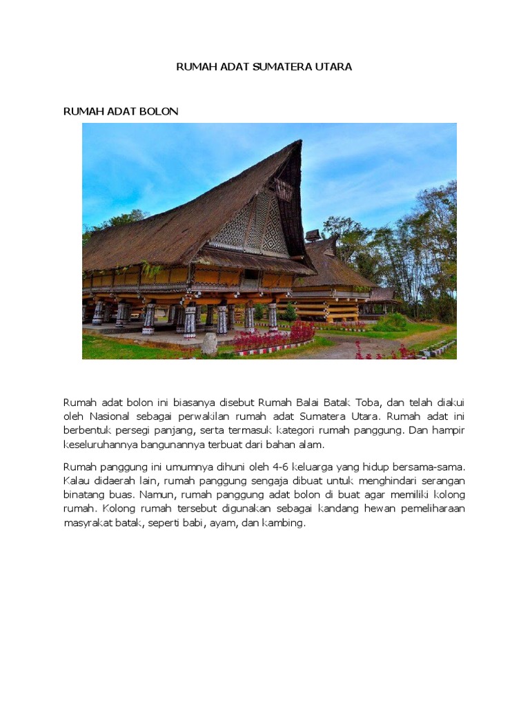 Rumah Adat Sumatera Utara Ciri Khasnya Gambar Lengkap